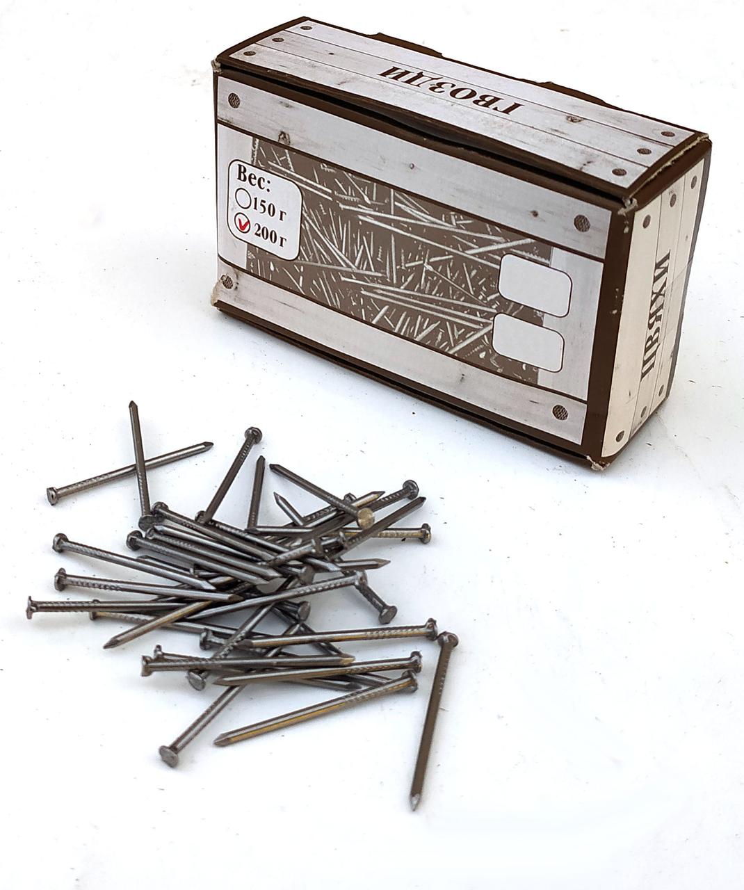 Даний цвях малого діаметра, фасоване по 200 гр. в упаковці. Сам цвях виготовлений з якісної низьковуглецевої сталевого дроту, очищений від стружки, без олії. Має рифлення, гострий, з акуратною капелюшком.