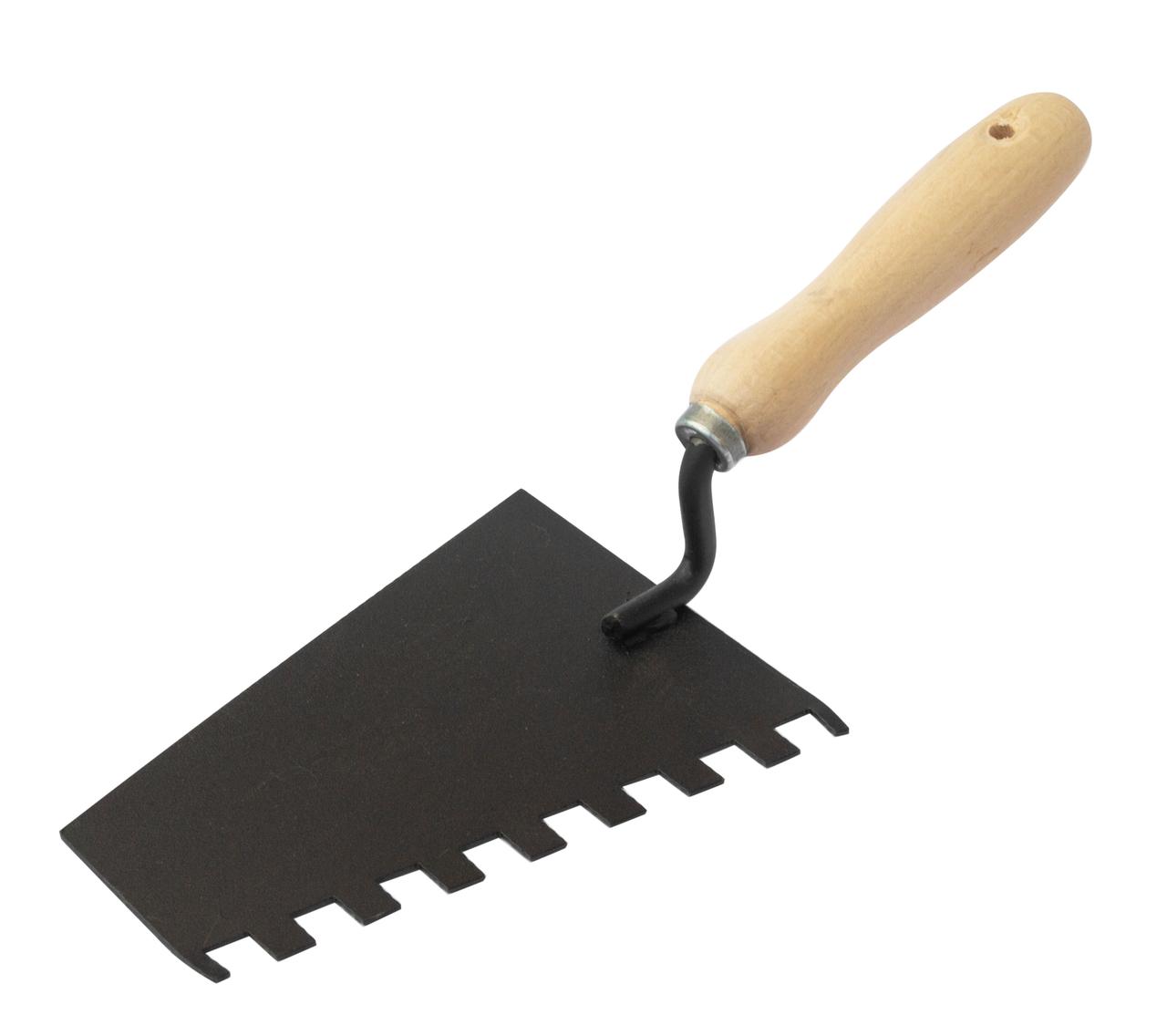 Кельма зубчаста використовується для розрівнювання та нанесення клейового розчину при кладці керамічної плитки; укладання, накидання та розрівнювання піщано-цементних розчинів.